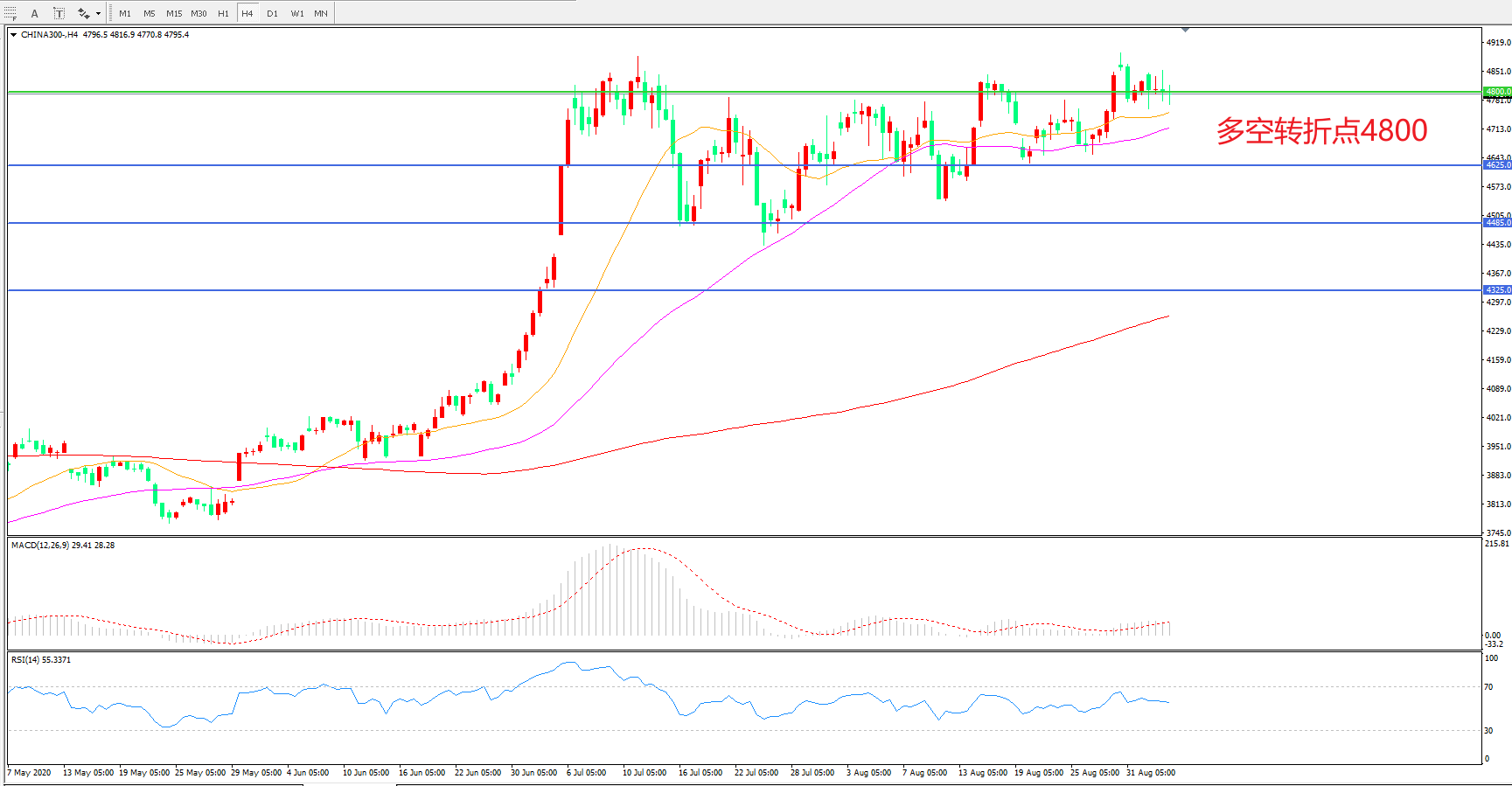多空转折点:4800.00