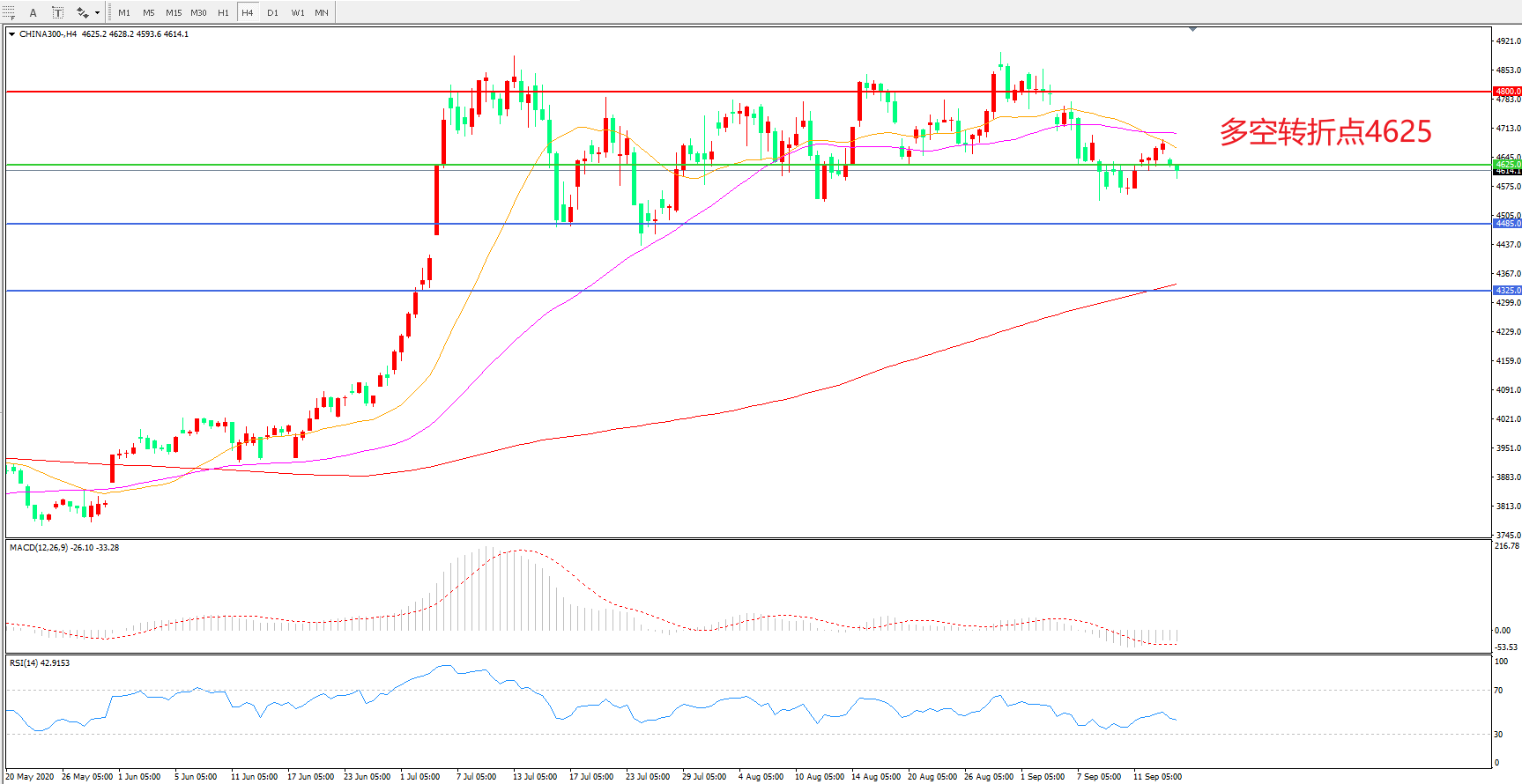 4小时图看,沪深300低开低走,整体维持低位震荡,4625成为短期多空分水岭,均线系统形成上方阻力, MACD绿柱缩短,RSI指标向上,日内延续震荡概率较大。