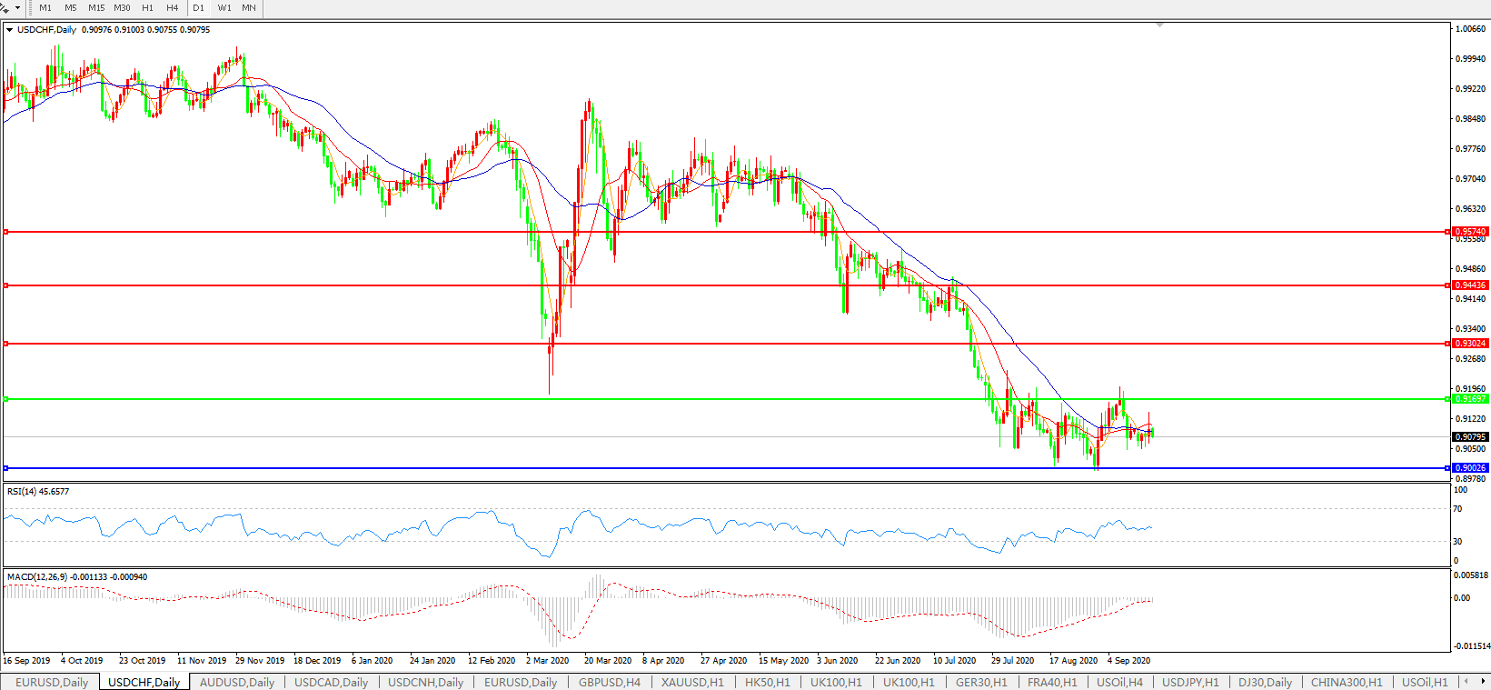 美元兑瑞郎USDCHF 日线图: