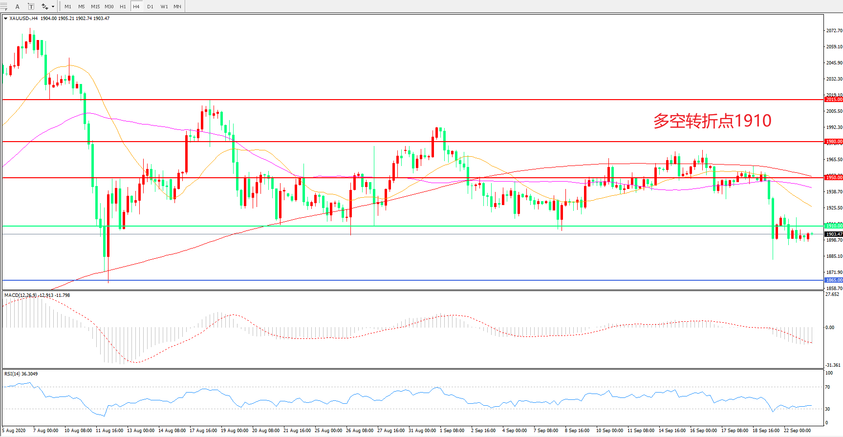 备选策略:在1910.00之上看涨,目标1950.00   1980.00