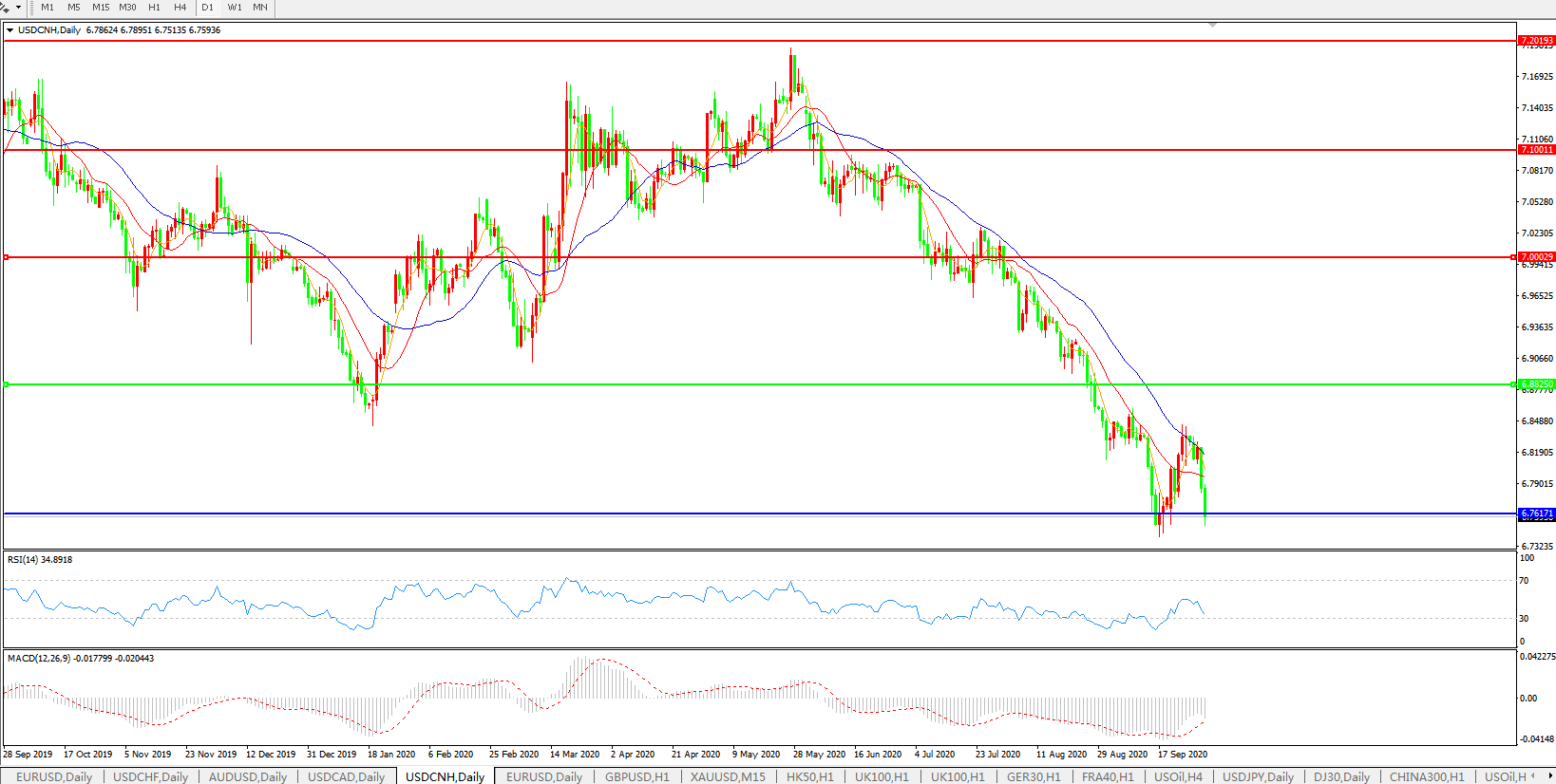 美元兑人民币USDCNH    日线图:
