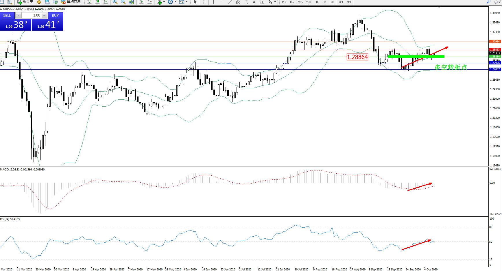 备选策略:1.28864上方看涨,目标1.29833、1.30964