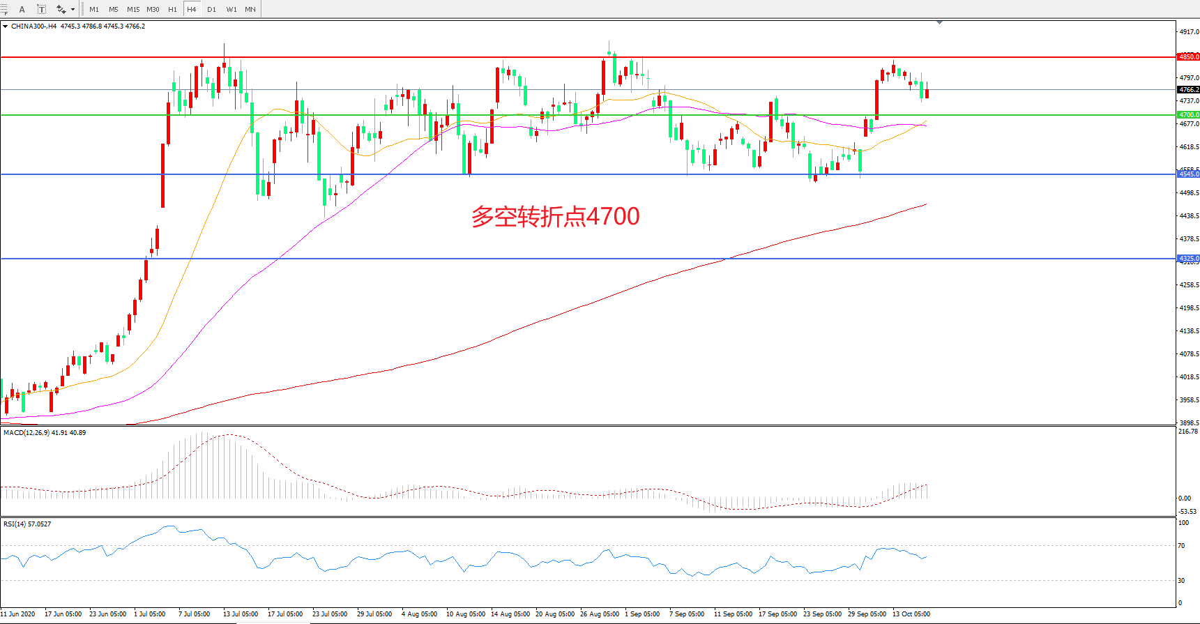 上周五(10月15日),A股三大指数出现震荡调整的走势,多数个股出现下跌,沪深300震荡下行,收报4766.2点。市场表现较为低迷,总体赚钱效应一般。回顾假期后的第一周行情,虽然指数并没能延续强势特征,但是目前资本市场的整体环境依然比较友好。这个“友好”,不仅体现在经济基本面上,而且还反映在管理层的政策支持以及投资者信心上。从短期来看,在连续的盘整过后,市场将面临一定的方向选择,这也意味着本周的A股市场走势将变得尤为关键。