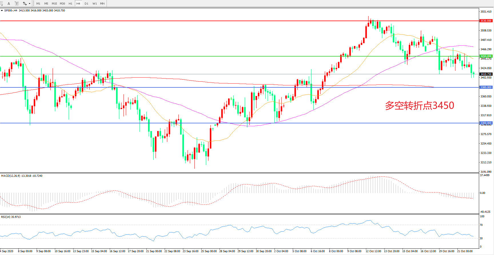 交易策略:在3450.00之下看跌,目标3380.00          3300.00