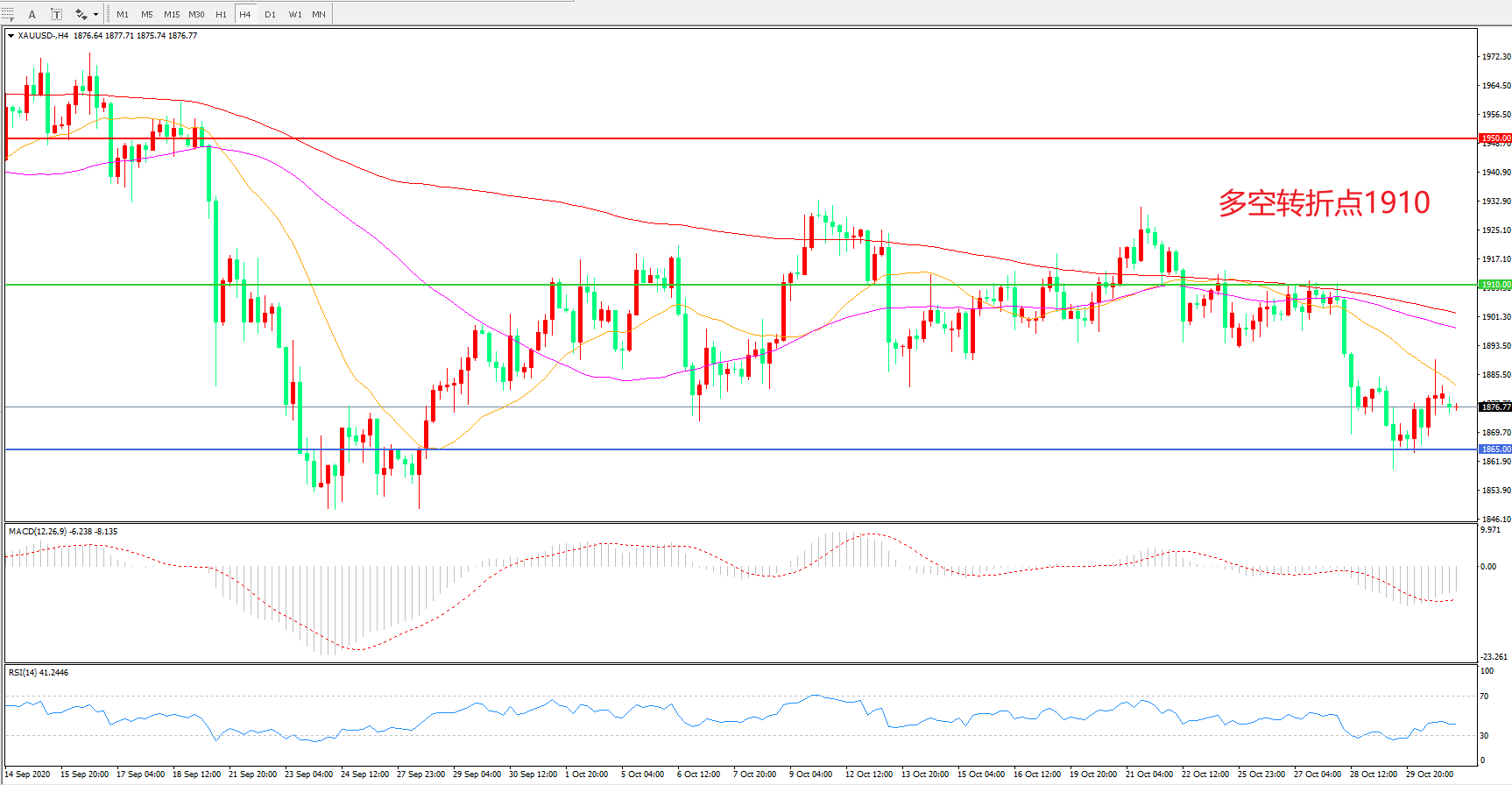 交易策略:在1910.00之下看跌,目标1865.00 1835.00