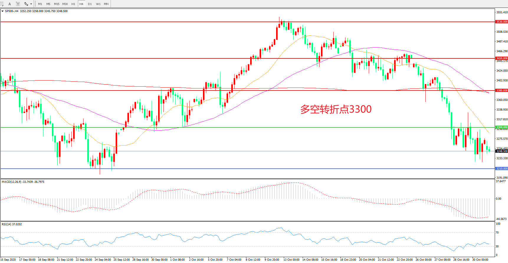 多空转折点:3300.00