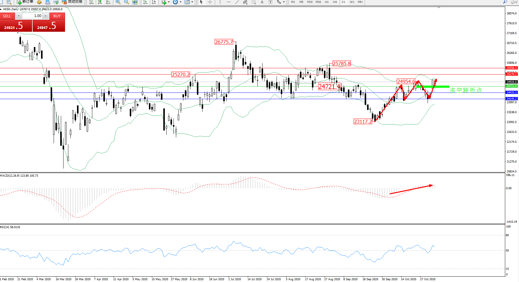 恒指HK50 ——日K线图显示: