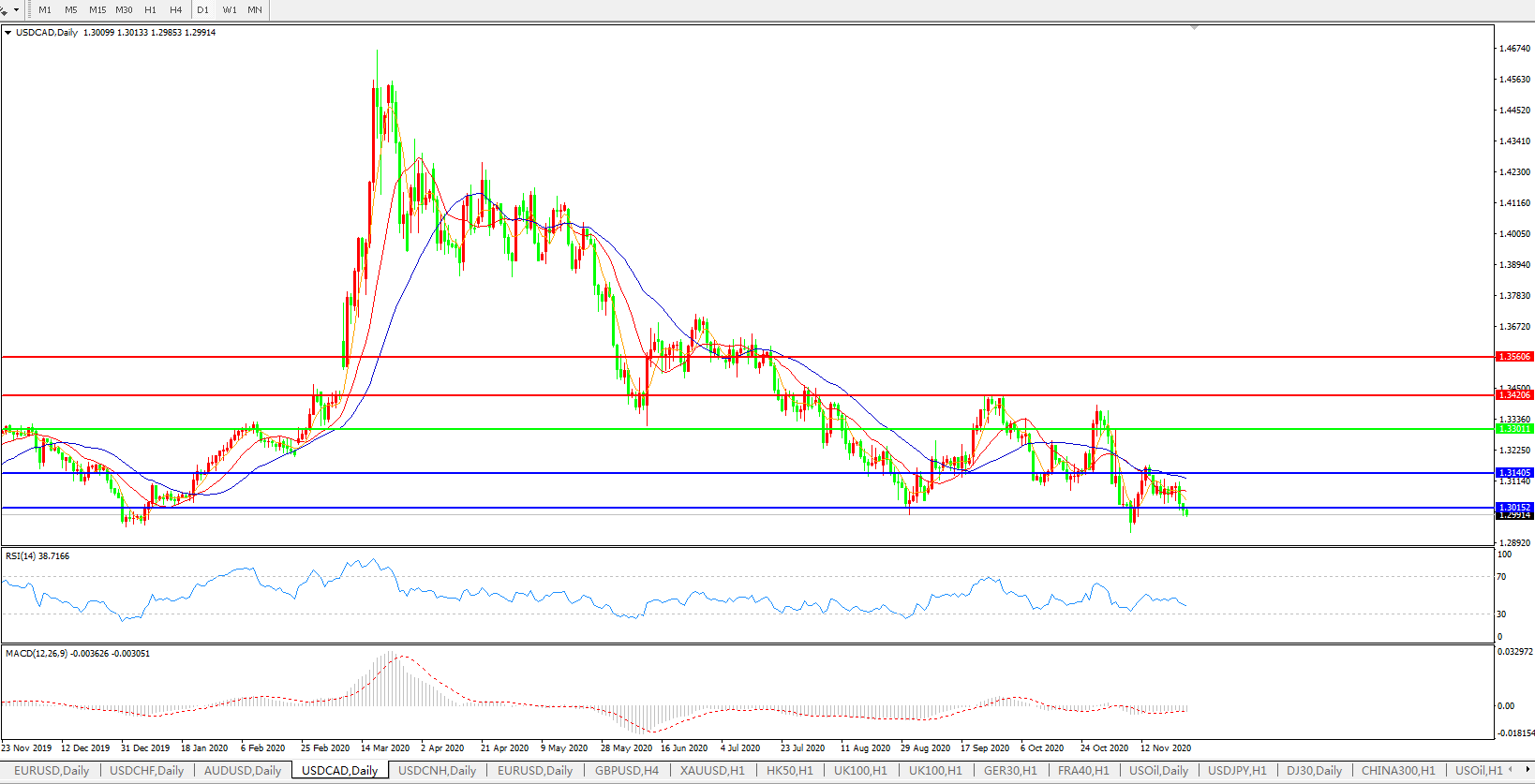 美元兑加元USDCAD 日线图: