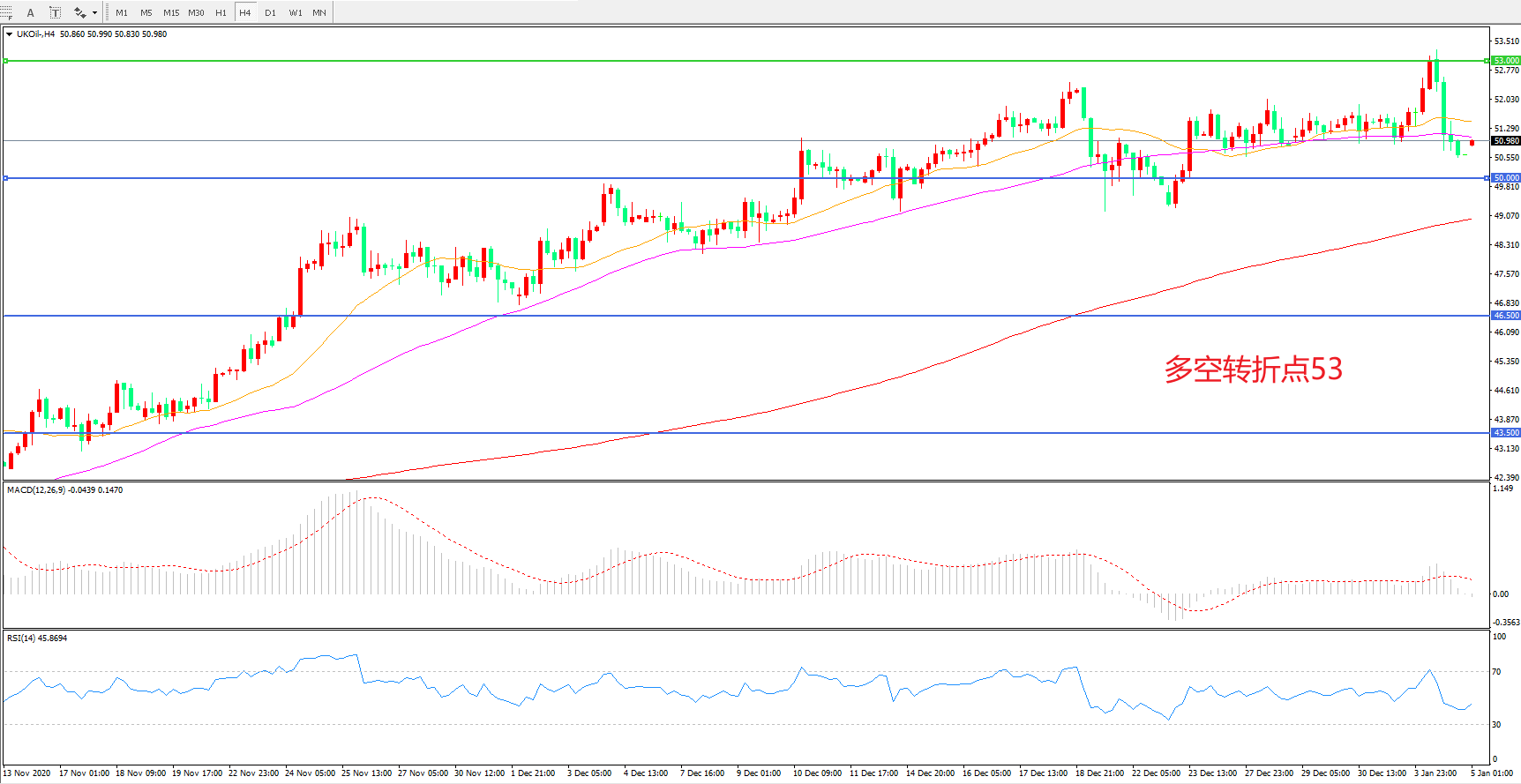多空转折点:53.00