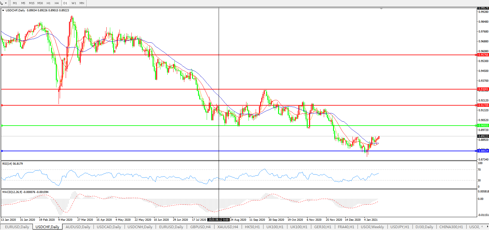 美元兑瑞郎USDCHF 日线图: