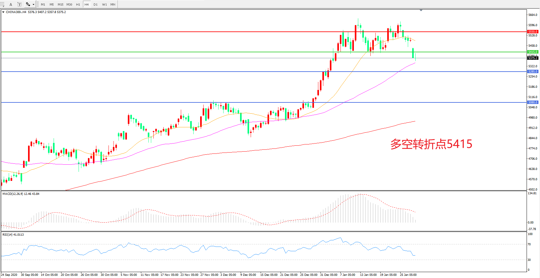 交易策略: 在5415.00之下看跌,目标5285.00    5080.00