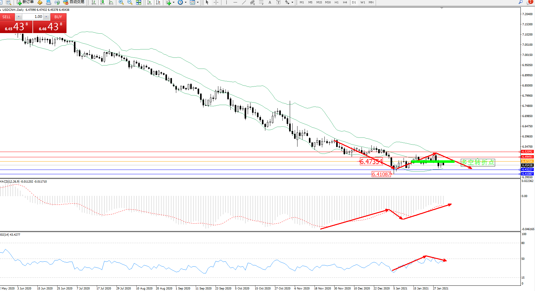 交易策略:6.47354下方看跌,目标6.43227、6.41087