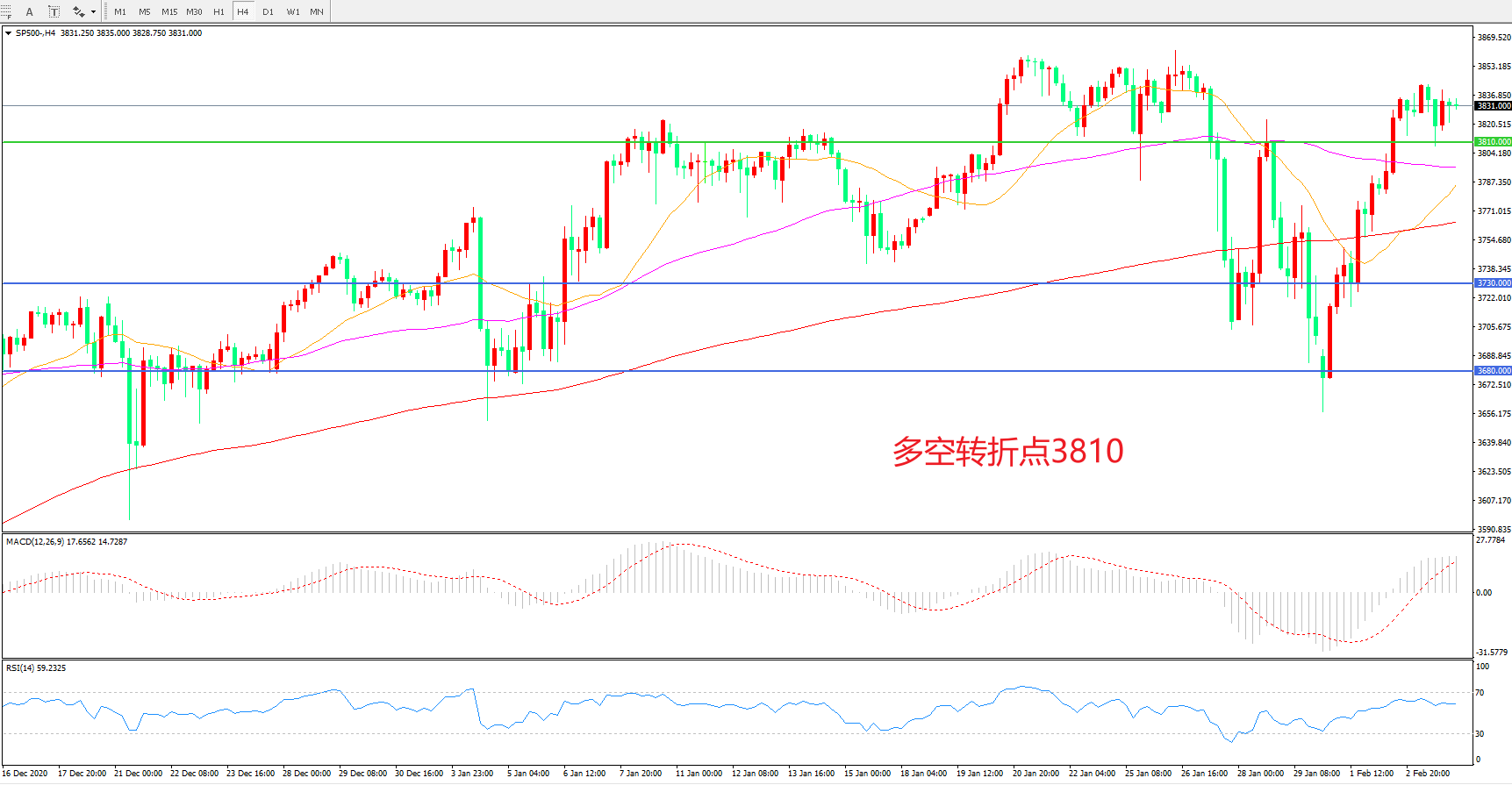 多空转折点:3810.00