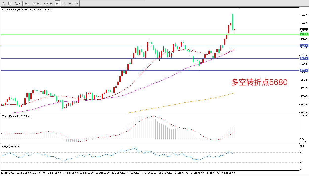 交易策略:在5680.00之上看涨,目标5800.00 5950.00