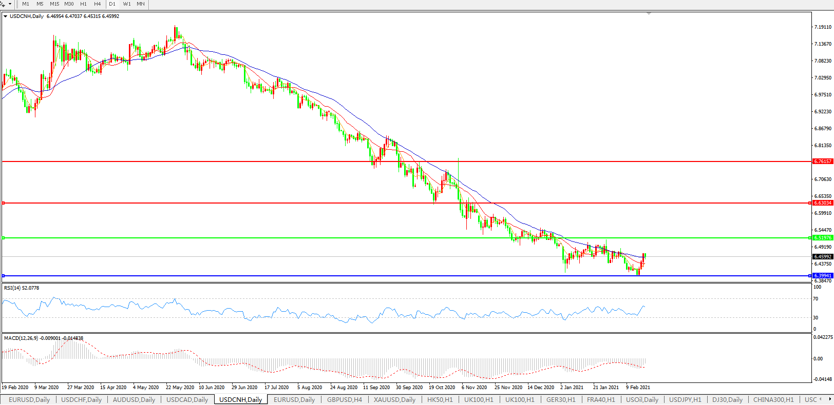 交易策略: 在6.5200之下,看跌,目标价位为6.4000,然后为6.2000。