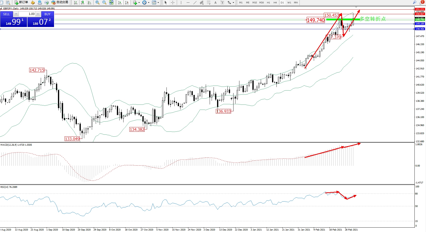 英镑兑日圆高位持续上移至149.991附近震荡,经济预计将在2022年中期恢复到大流行前的规模,比之前的预测提前六个月。未来五年,英国的经济规模仍将比没有新冠危机冲击的情况减少3%,由于英国仍处于新冠疫情限制措施之下,目前需要额外的支持。英国政府下一个财政年度的借款将大幅增加,达到2340亿英镑,相当于国内生产总值(GDP)的10.3%,超出预期。英国公债价格大跌。为了控制借贷,宣布了未来的增税计划,这将使税收负担达到1960年代以来的最高水平,到2020年代中期,税收负担将从占GDP的34%上升到35%。政府将开始推出一些财政紧缩措施,以提振英国财政前景。因此,英国将成为第一个考虑采取此类措施的主要经济体。