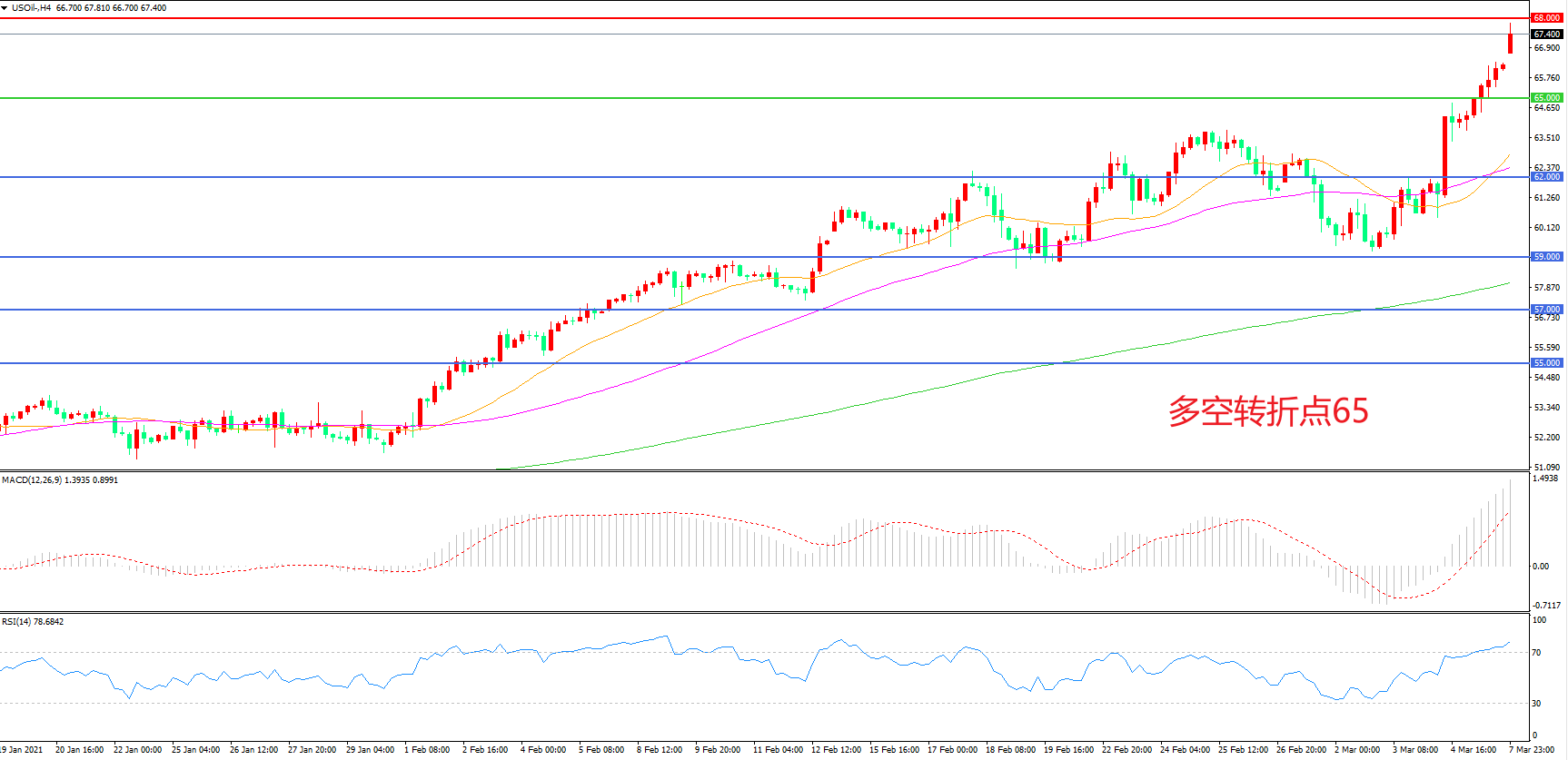 多空转折点:65.00