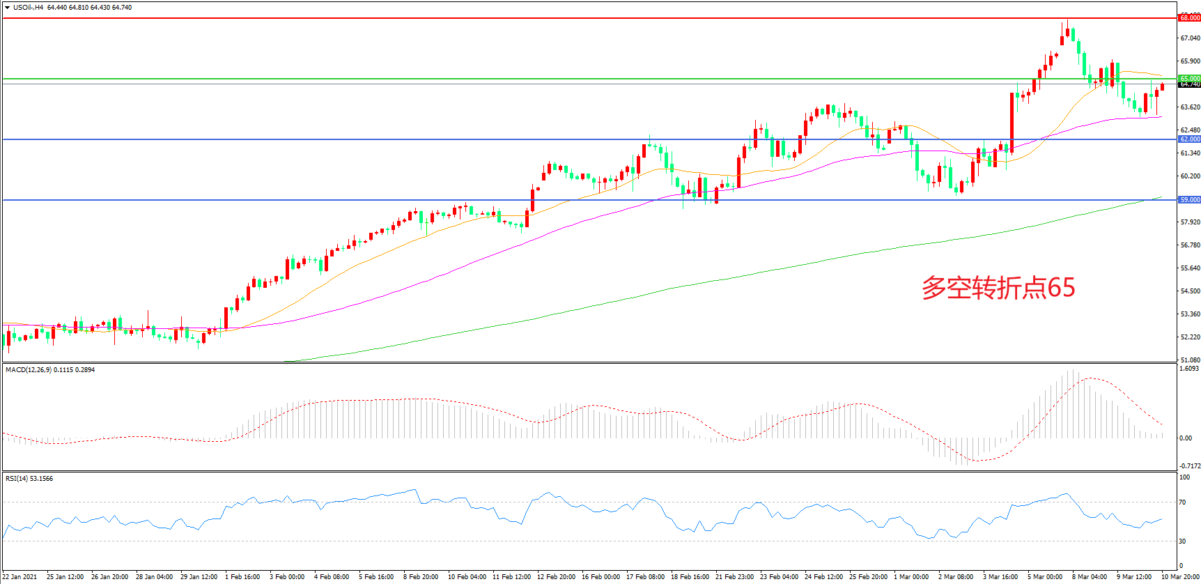 多空转折点:65.00