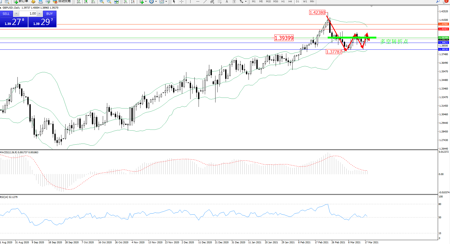 交易策略:1.39399下方看跌,目标1.38821、1.38030