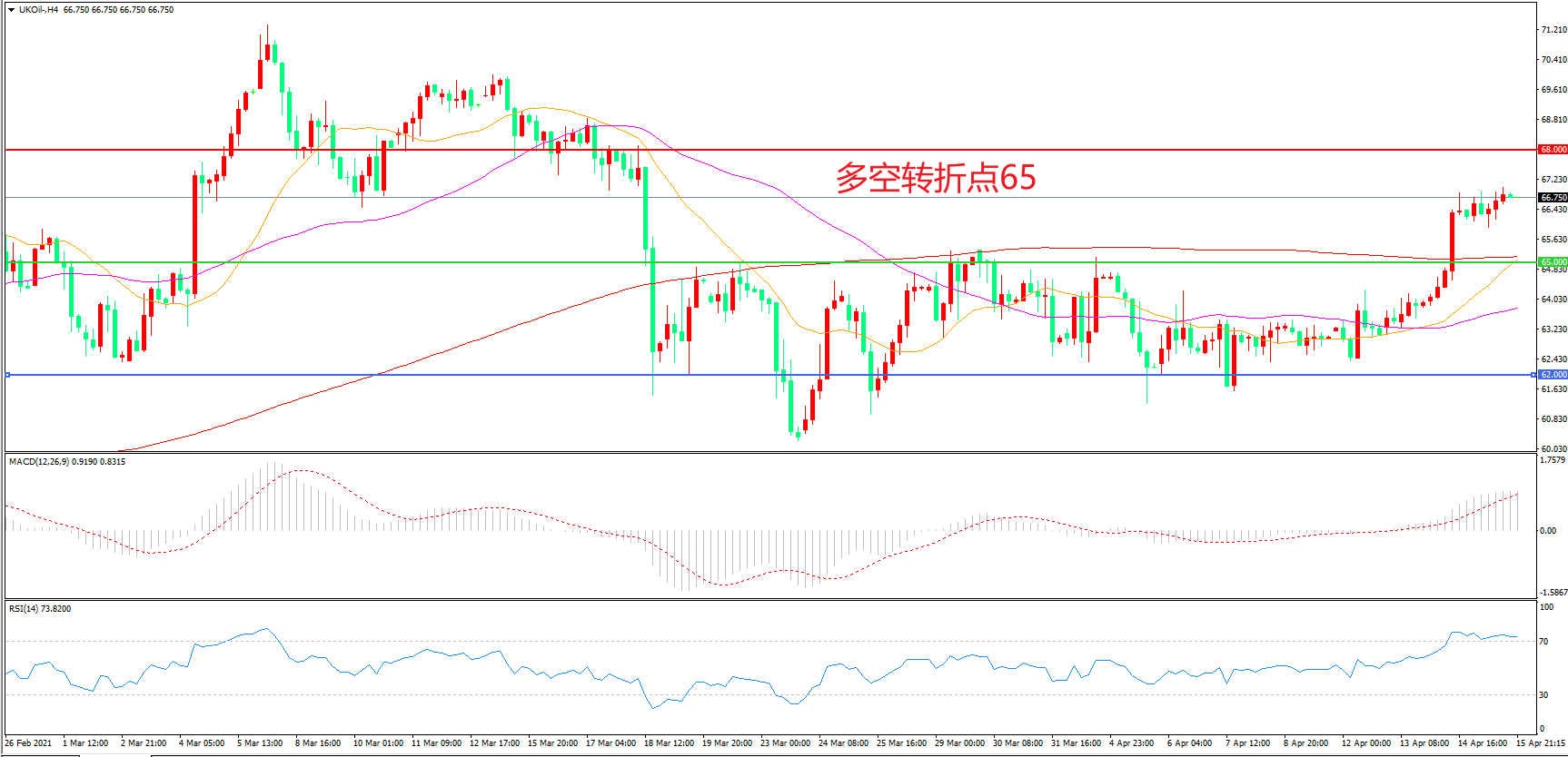 交易策略:在65.00之上看涨,目标68.00 72.00