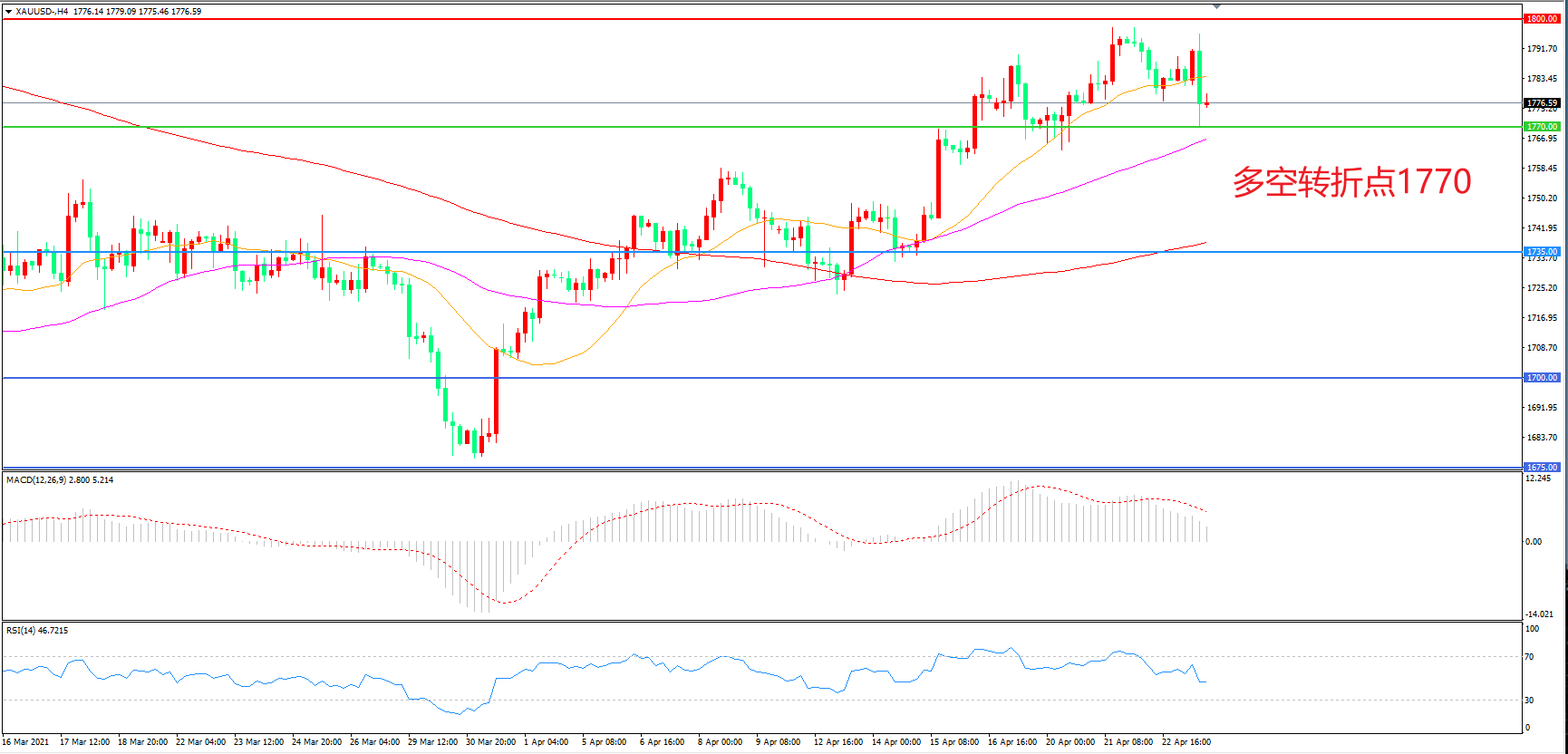 交易策略:在1770.00之上看涨,目标1800.00    1840.00