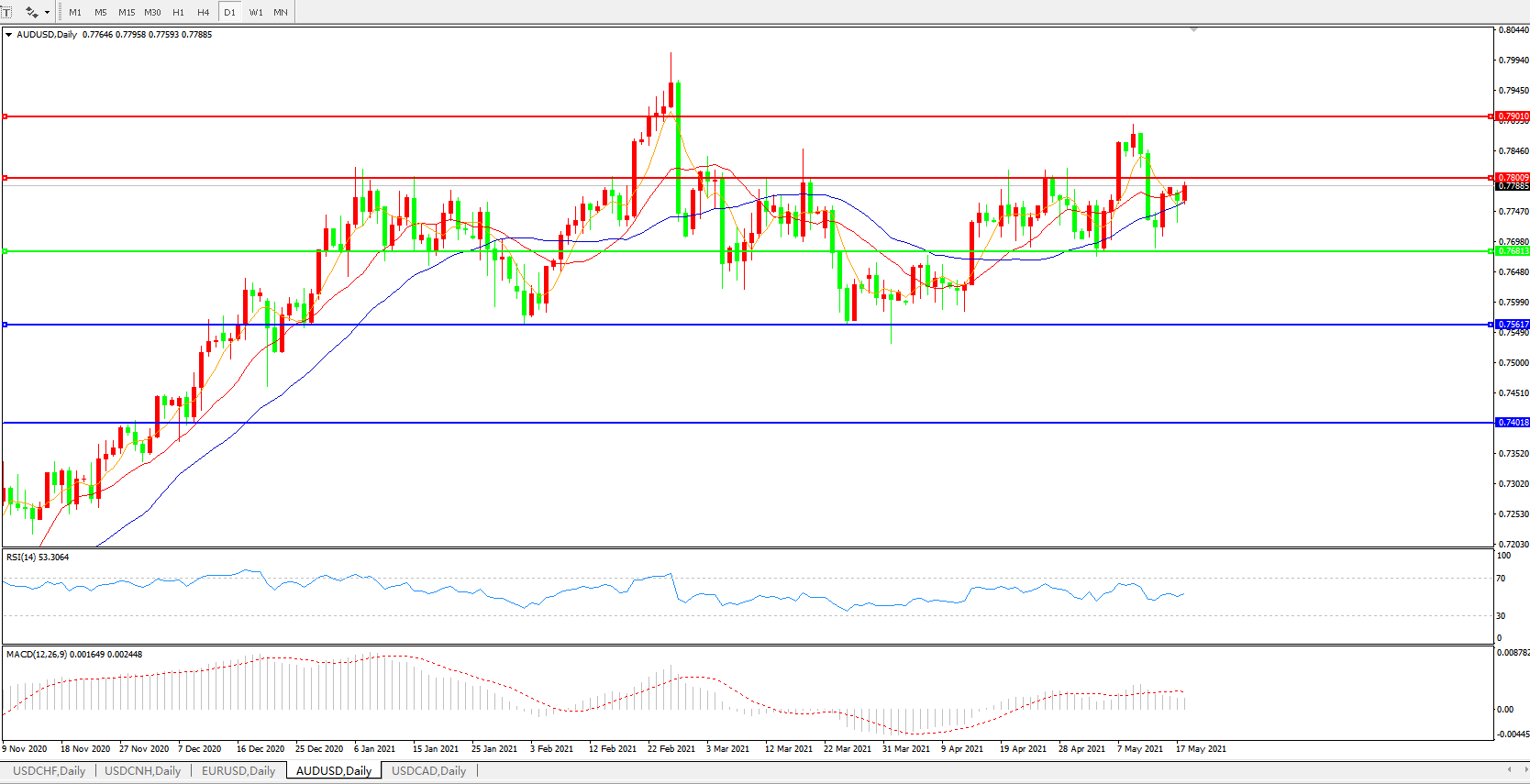 压制位:0.7800 0.7900