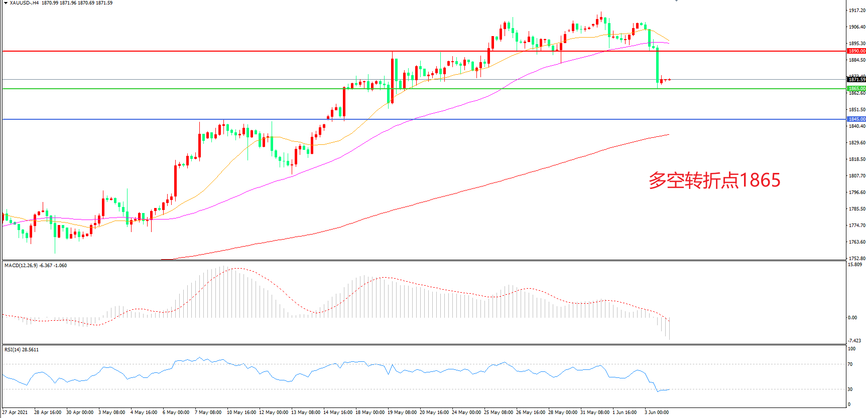 多空转折点:1890.00