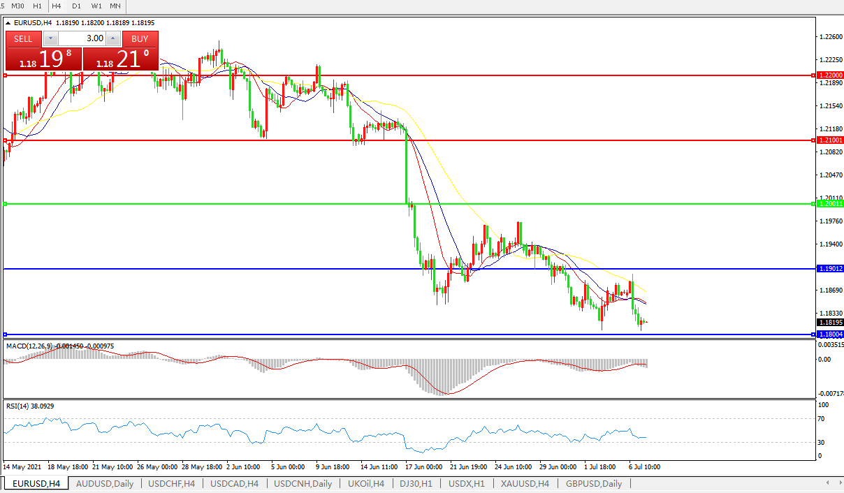 欧洲公布的数据令人失望,欧元兑美元跌至三个月低点。ZEW经济研究所报告称,作为欧元区最大经济体,德国的投资者信心仍处于高位,但在7月份大幅下降。同时数据显示,5月德国工业订单出现2020年首次封锁以来的最大降幅