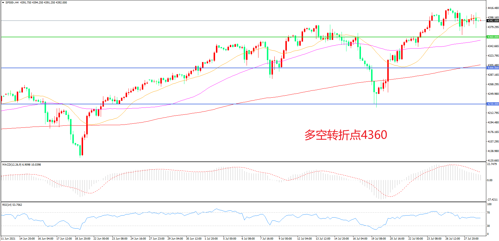 多空转折点:4360.00
