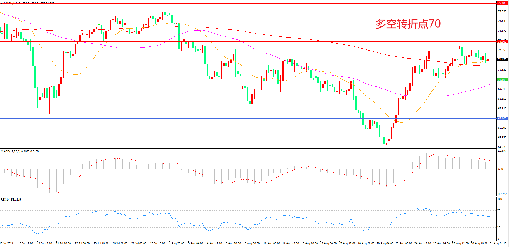 交易策略:在70.00之上看涨,目标73.00                76.00