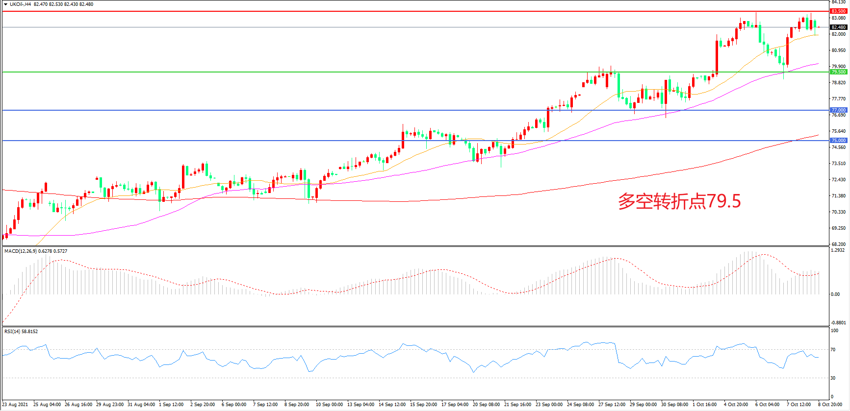 4小时图看,油价回踩21周期均线后再度上行,多头趋势明显,均线系统呈多头排列,MACD红柱增加,RSI指标走平,日内震荡上行概率较大。