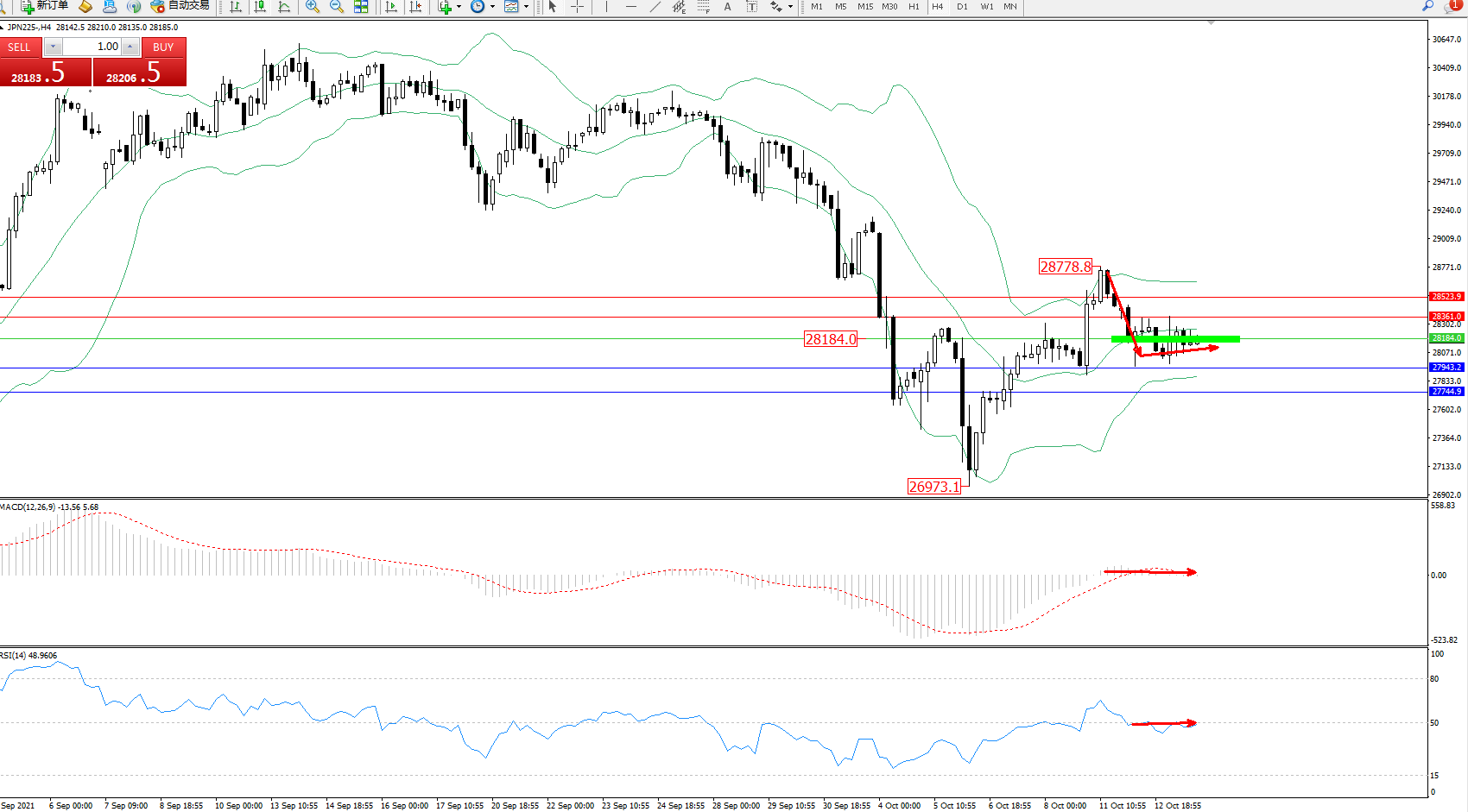 日经指数JPN225——4小时K线图显示: