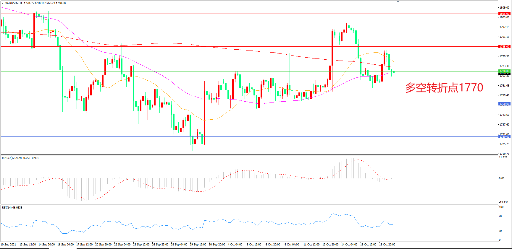 交易策略:在1770.00之下看跌,目标1750.00 1730.00