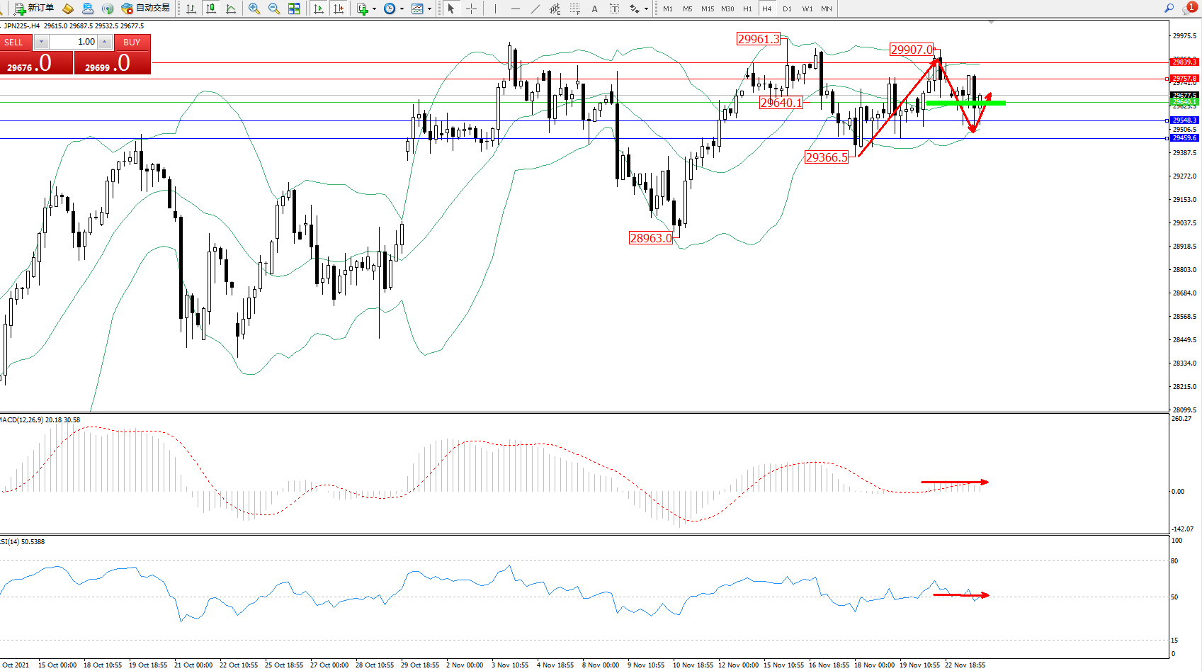 东京证券交易所 劳动感谢日,休市一天,日经225指数11月22日(周一)收盘上涨51.63点,涨幅0.17%,报29797.50点。据日本朝日新闻,日本准备释放战略石油储备,该计划是日本政府正在考虑的主要提案。日本政府官员表示,可以合法地向市场上释放石油储备,也有所计划,但考虑到释放总量的问题,此举对石油价格的影响有限。