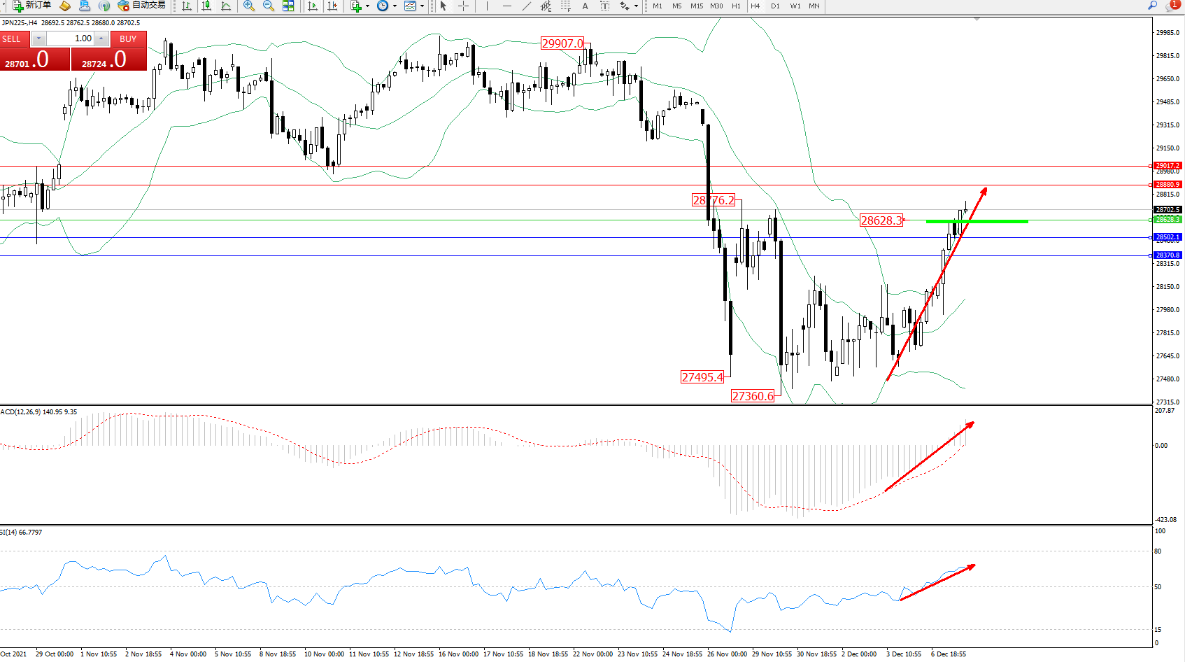 日经225指数12月7日(周二)收盘上涨677.13点,涨幅2.42%,报28604.50点。日本央行将在所有办事处提供2000亿日元证券,日本财务大臣铃木俊一:有关税收修订的讨论进入最后阶段。没有考虑设定不同的财政目标来取代原来的预算目标。