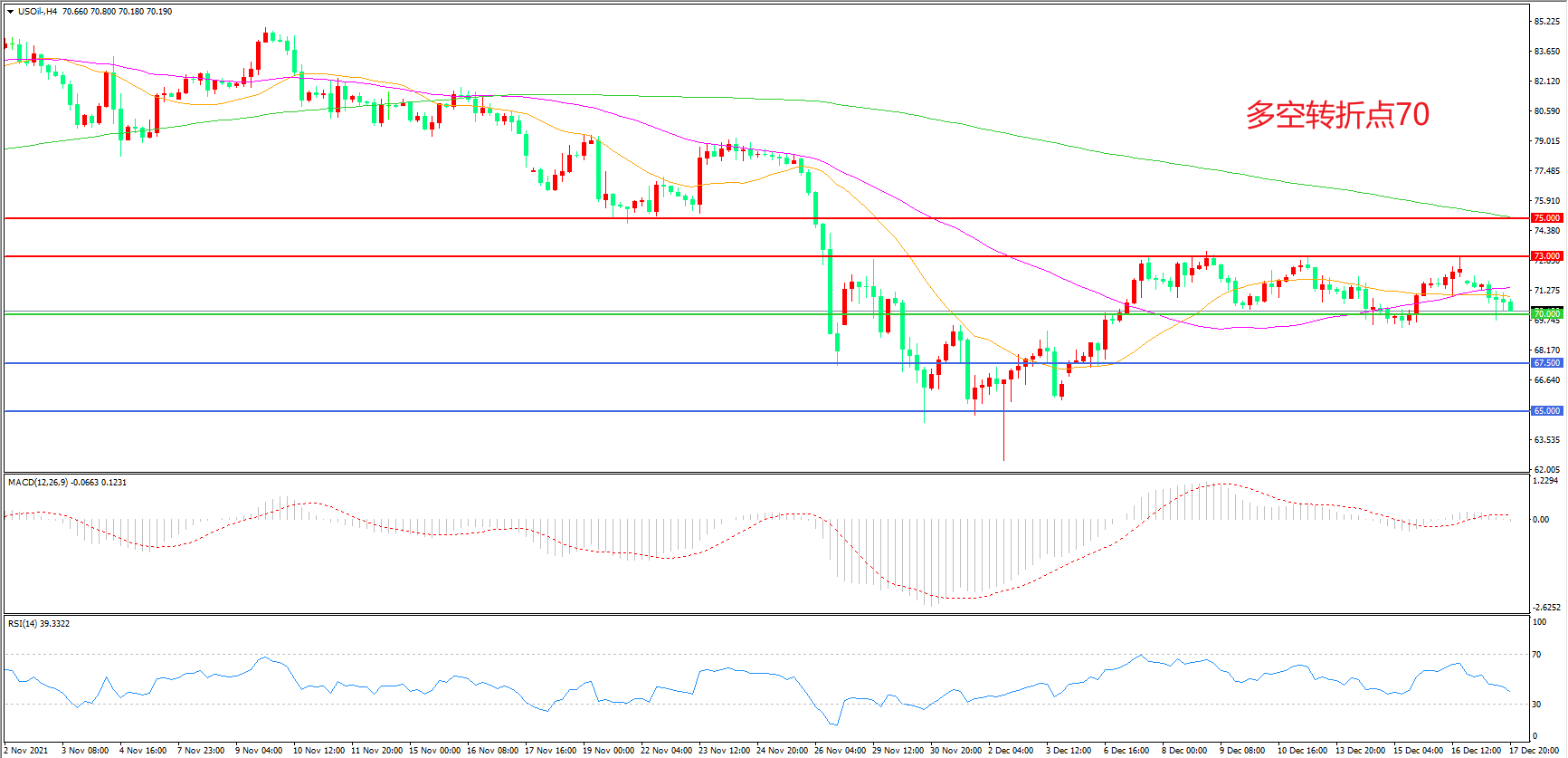 备选策略:在70.00之下看跌,目标67.50        65.00