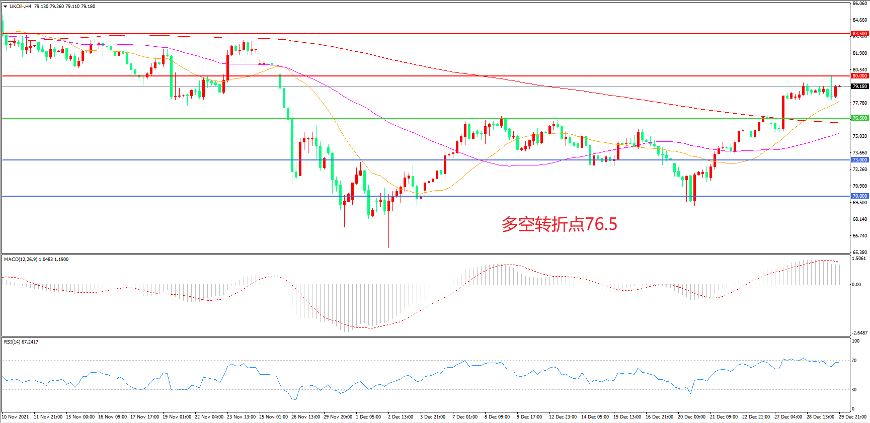 交易策略:在76.50之上看涨,目标80. 00 83.00