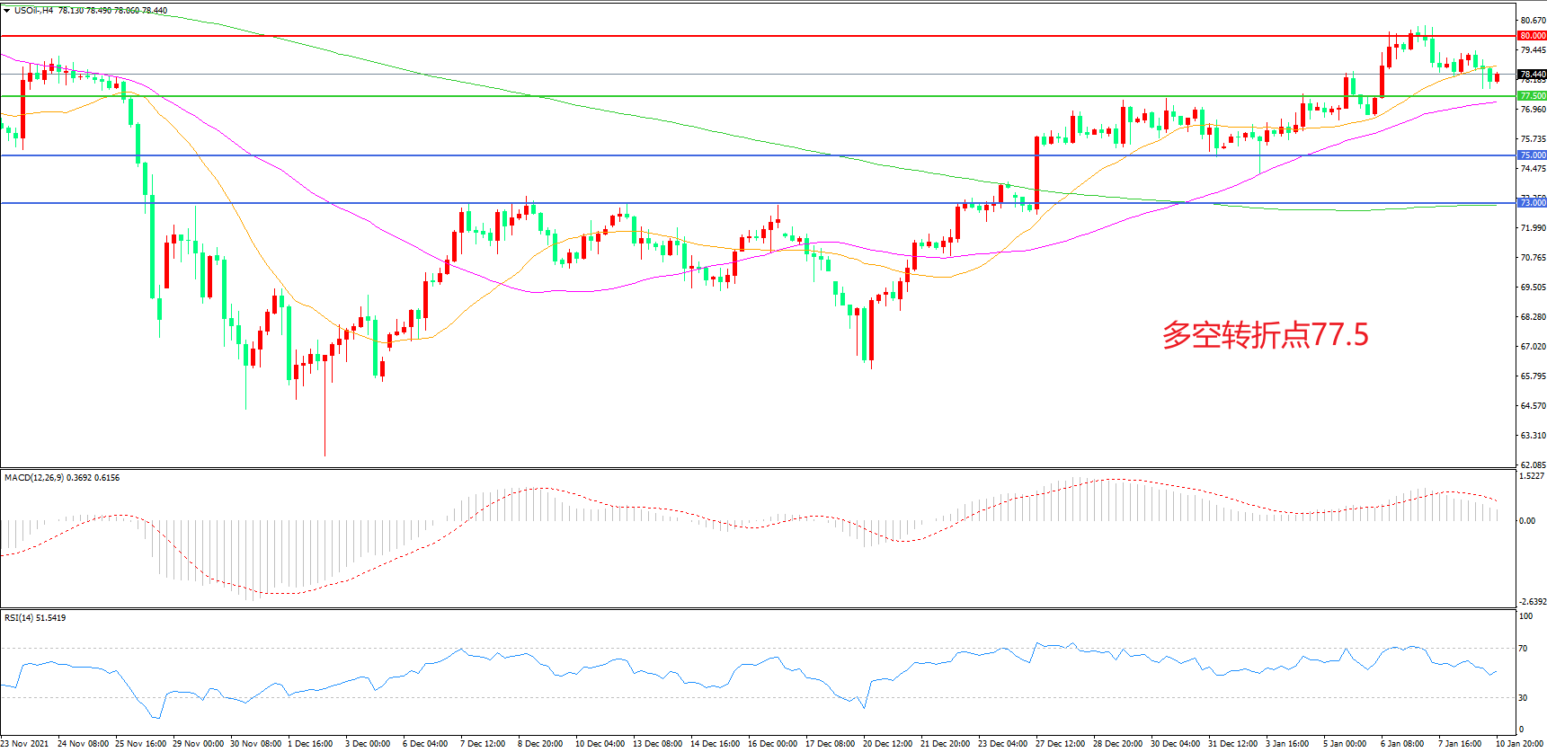 多空转折点:77.50