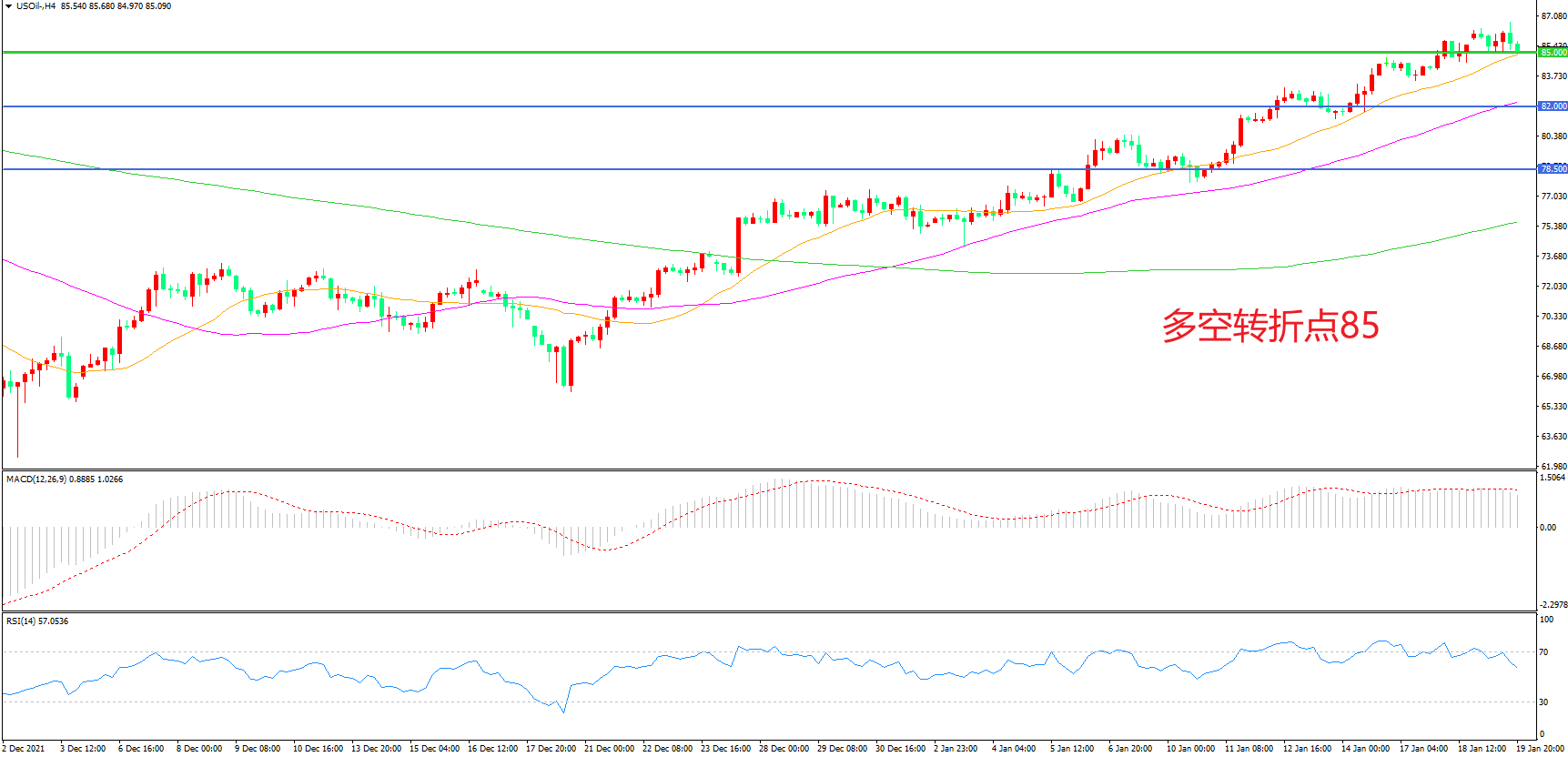 交易策略:在85.00之上看涨,目标88.00 90.00