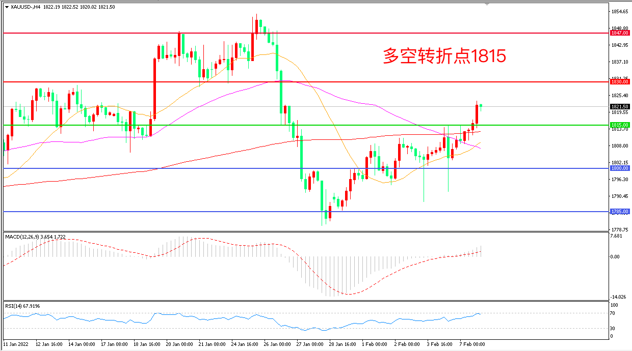 交易策略:在1815.00之上看涨,目标1830.00 1847.00