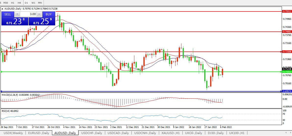 交易策略:0.7100上方看涨,目标0.7250、0.7400
