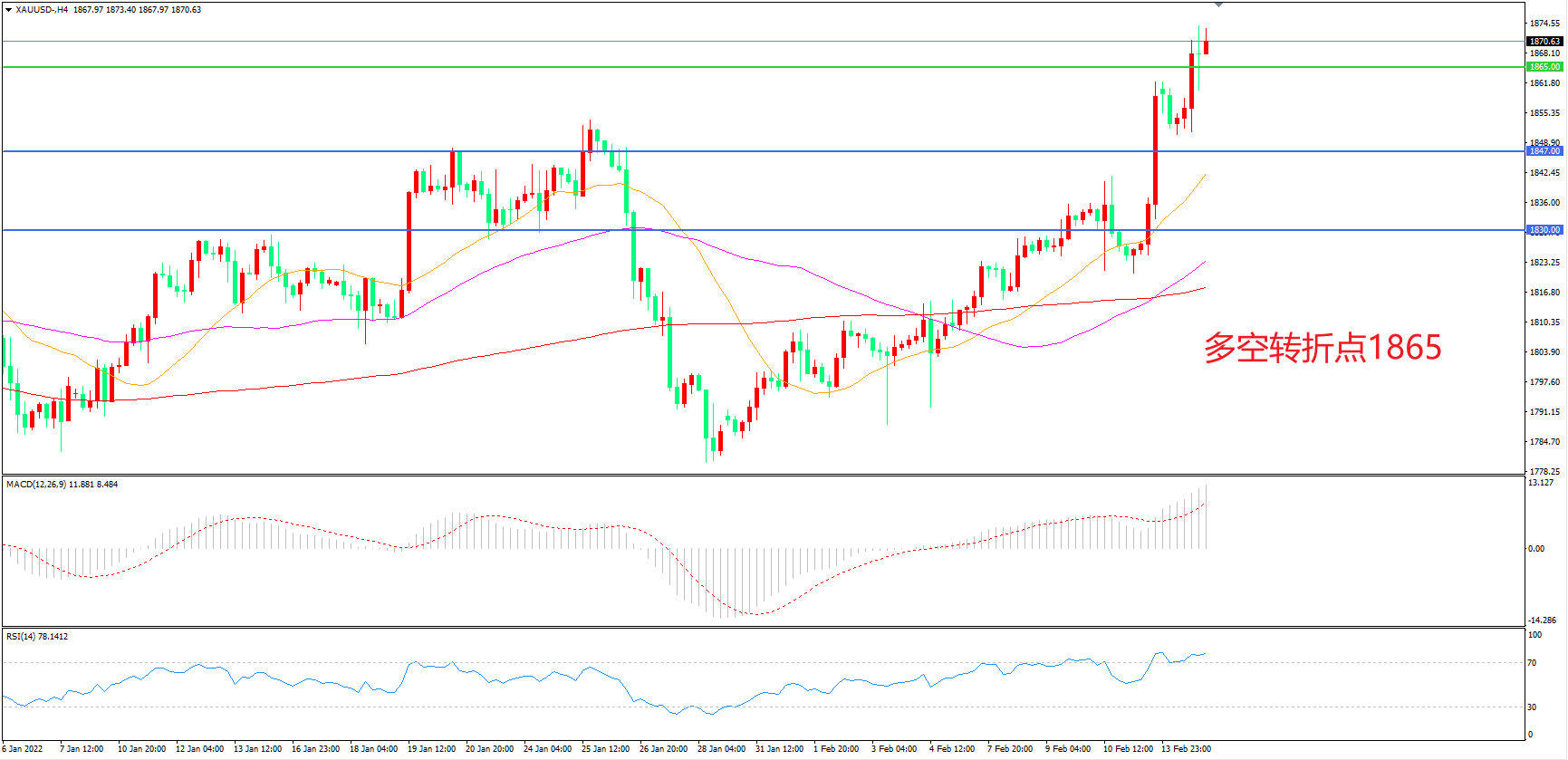 交易策略:在1865.00之上看涨,目标1885.00       1900.00
