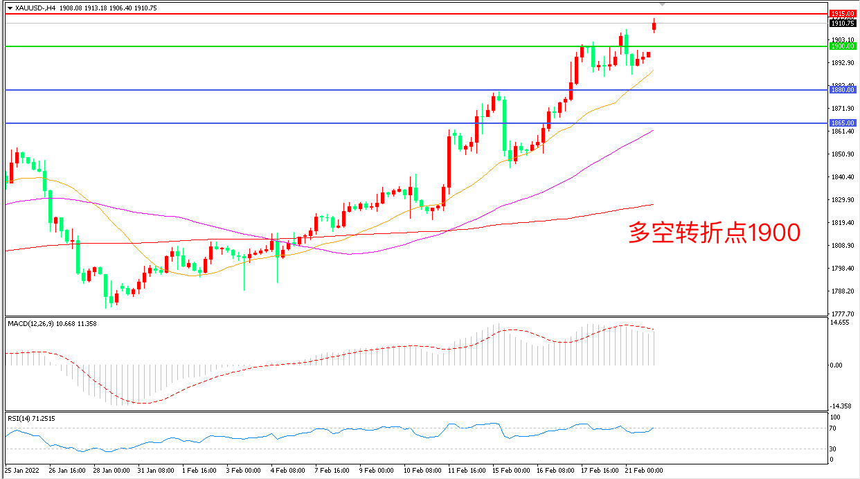 交易策略:在1900.00之上看涨,目标1915.00       1930.00