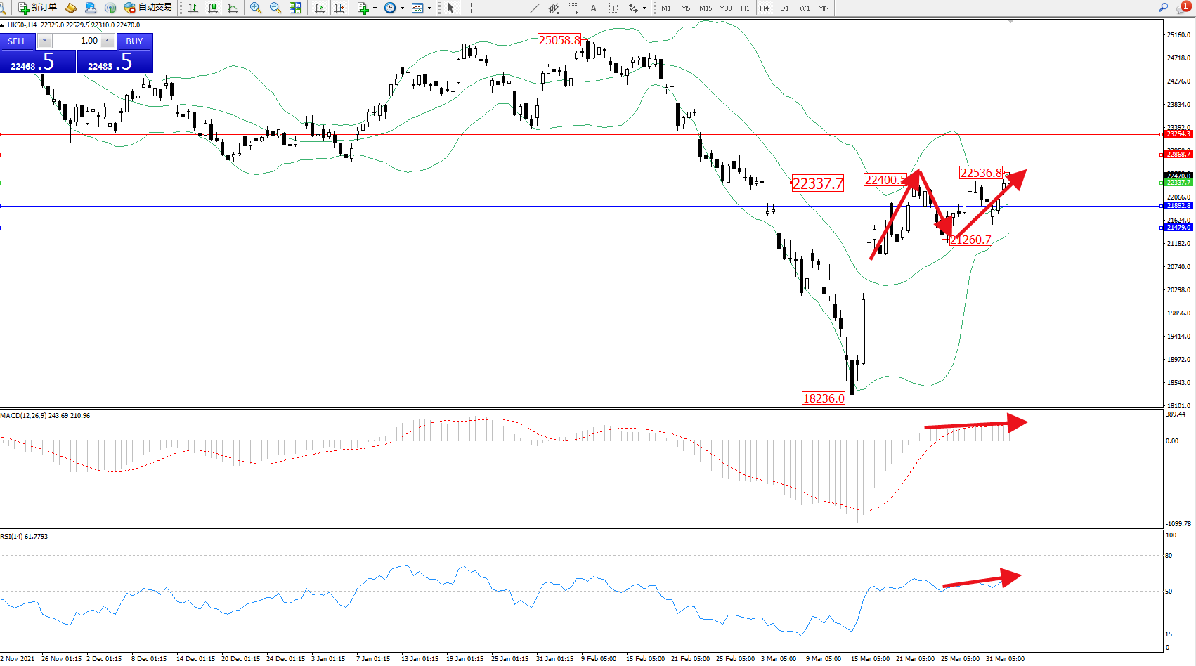 香港恒生指数4月4日(周一)收盘上涨462.76点,涨幅2.1%,报22502.31点;A股清明节休市,港股今日大爆发,恒生科技指数涨5.43%,重回4700点上方。昨日港股清明节休市,香港特区政府教育局局长杨润雄4月4日宣布,2022年香港中学文凭考试将如期于4月22日开考,约六成考生将在前2周完成所有科目,5月14日考试全部结束,将于7月20日发榜。杨润雄表示,由于近日疫情趋缓,同时特区政府派发防疫服务包等,相信有助于进一步稳控疫情,同时大部分学生的意愿是期望尽快进行考试,因此,在做好防护措施的情况下,考试可以安全进行。