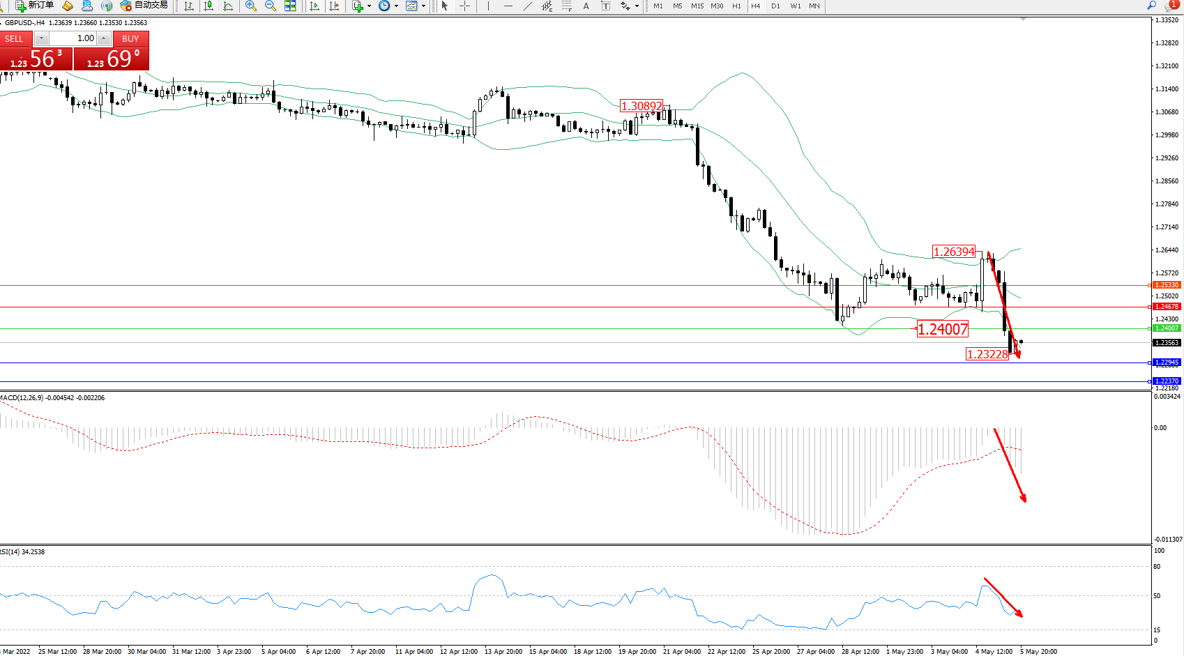 英镑美元GBPUSD ——4小时K线图显示:
