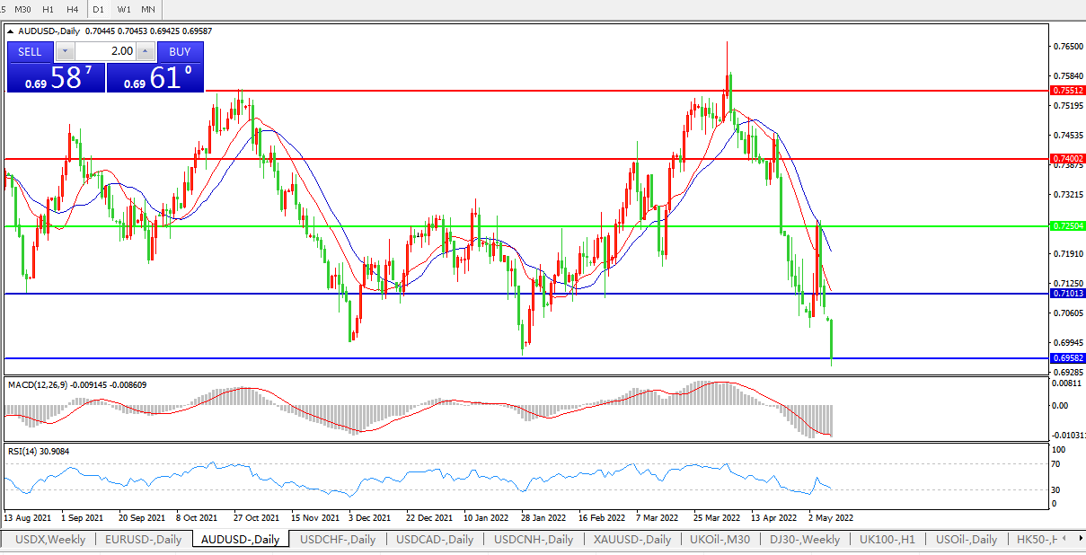 美股遭遇广泛抛售,澳元兑美元加速下行