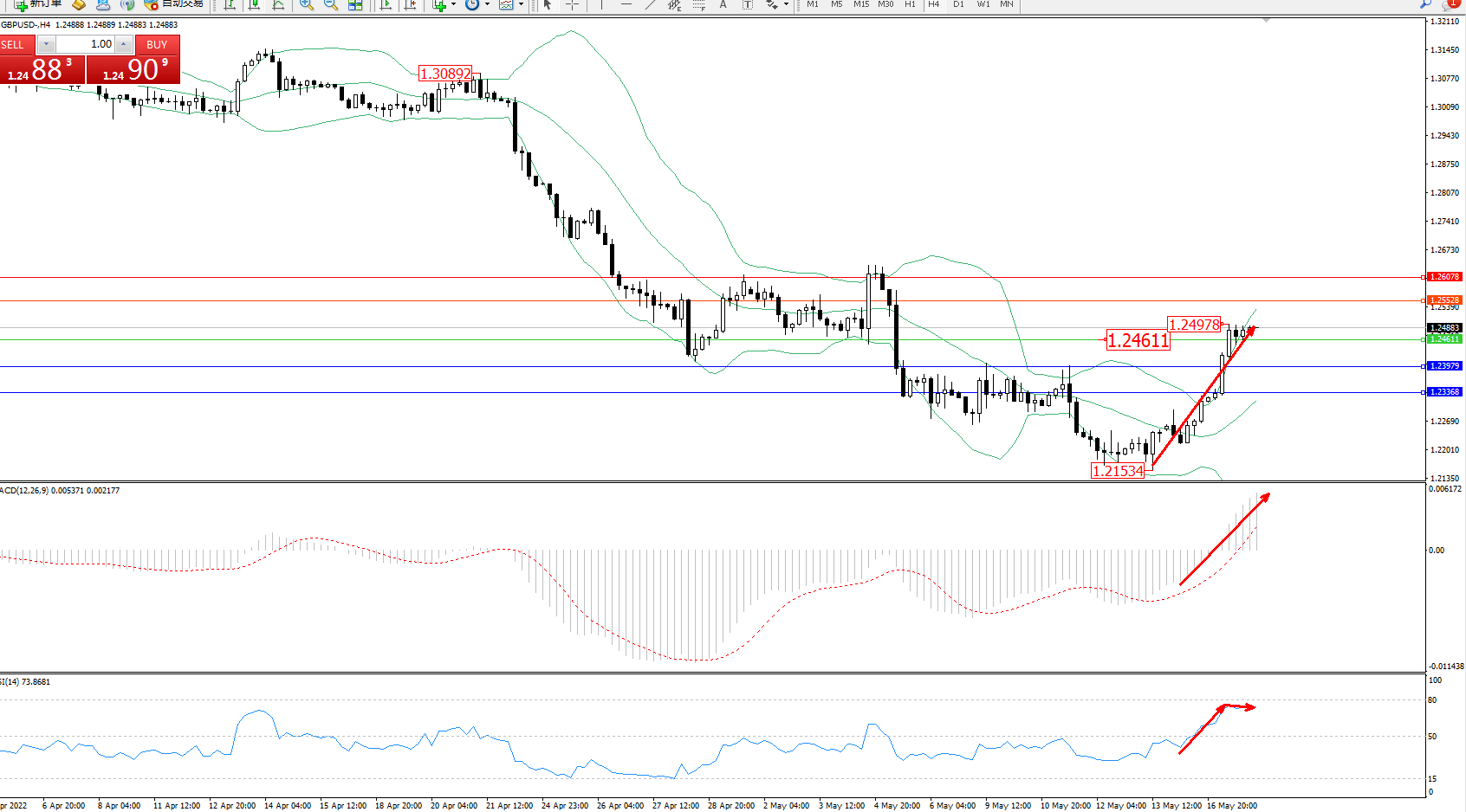 交易策略:1.24611上方看涨,目标1.25528、1.26078