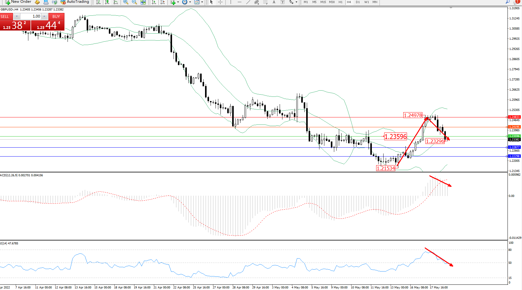 交易策略:1.23596下方看跌,目标1.22877、1.22298