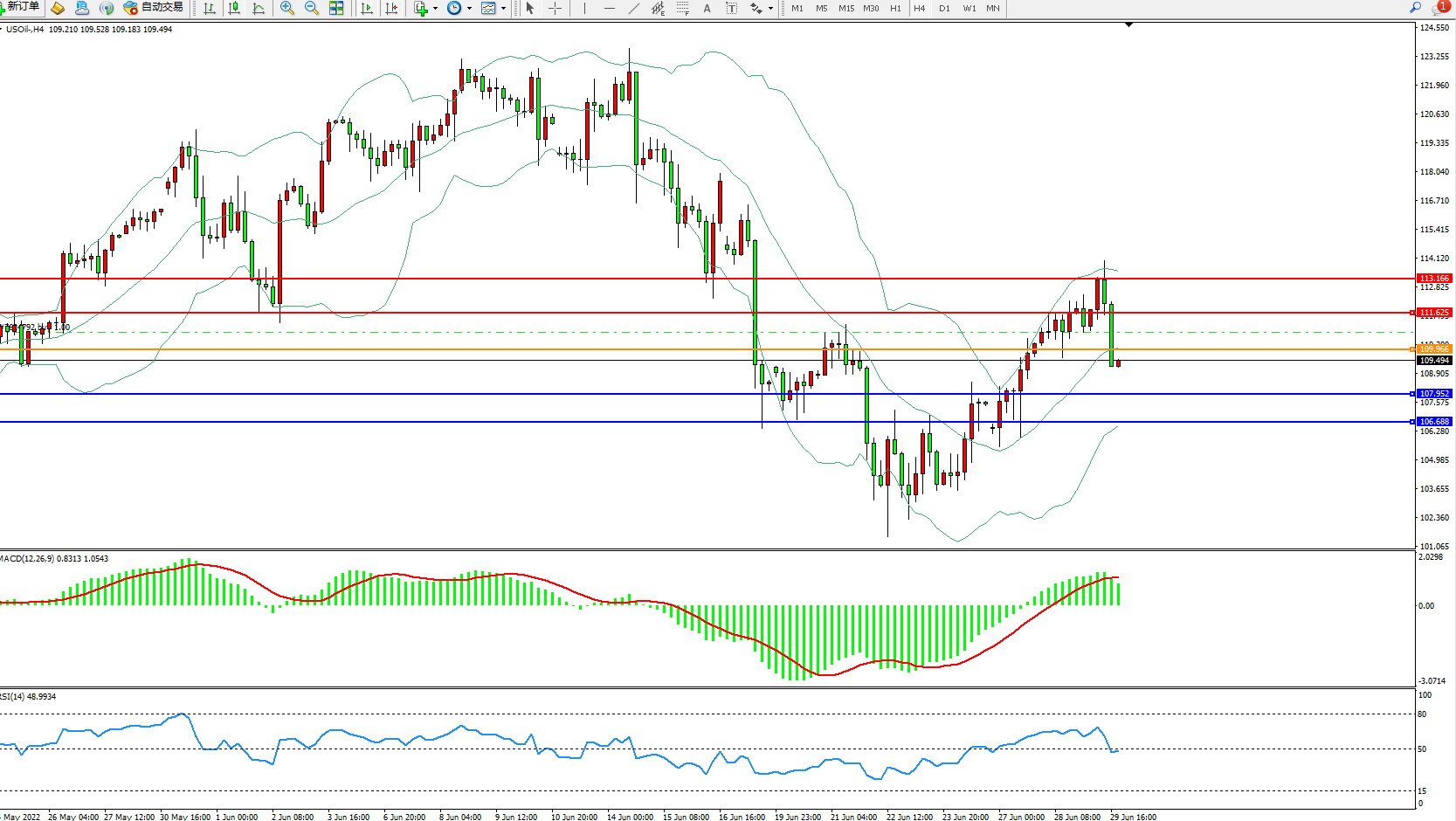 原油USOil——4小时K线图显示: