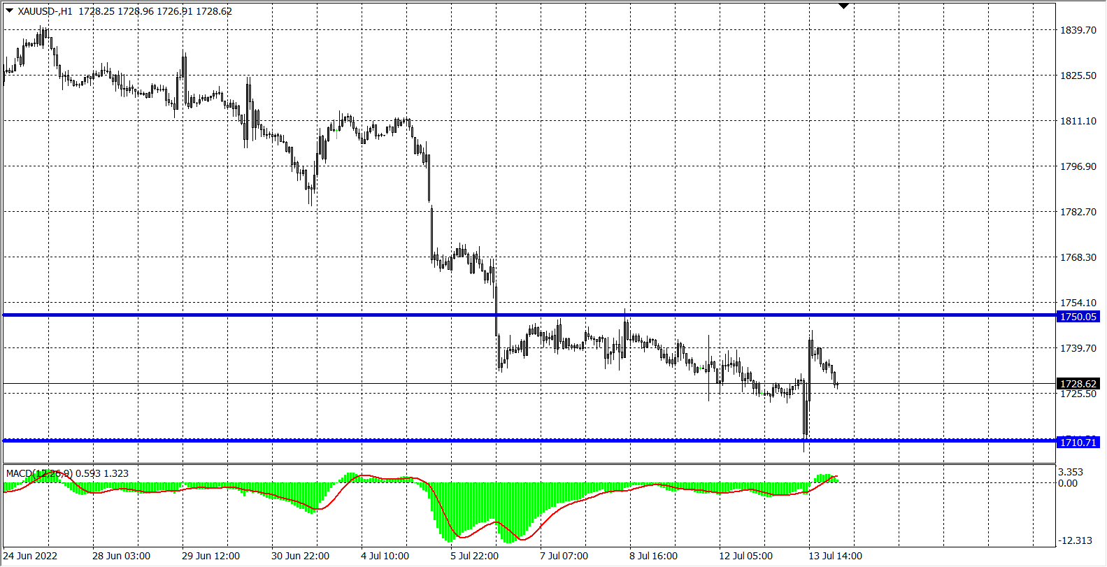 现货黄金XAUUSD    1小时图